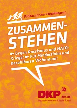 Wir als linke Bewegung, wir als Kommunistinnen und Kommunisten finden andere Antworten auf Krisen und Probleme. Andere Antworten als Bomben und Ausbeutung! Das Flüchtlingslager in Moria muss dicht gemacht, die Menschen müssen auf die europäischen Staaten aufgeteilt und menschenwürdig behandelt werden! Platz ist genug da! Den Menschen in ihren Heimatstaaten muss geholfen werden und das nicht mit noch mehr Waffen in den Händen von korrupten vom Westen unterstützten Regierungen oder deutschen- und US-amerikanischen Konzernen, sondern mit Internationalismus und Solidarität! Mit Aufbauhilfe, statt Schuldenknechtschaft! Mit sozialen Lösungen, statt mit kapitalistischer Wirtschaftslogik. Und mit den Geflüchteten, die bereits hier sind, müssen wir zusammen für eine bessere, gerechtere Gesellschaft kämpfen! Für ein solidarisches Europa – gegen eine EU mit Abschiebungen und überfüllten Flüchtlingslagern! Nieder mit rechten Schlägerbanden und Parteien im Bundestag! Für eine Welt ohne Kapitalismus und Ausbeutung! We will fight together, for a better World – leave no one behind!